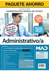 PAQUETE AHORRO ADMINISTRATIVO DEL ESTADO (ACCESO LIBRE). AHORRA 96 € (INCLUYE TEMARIOS 1, 2, 3, 4 Y 5; TEST Y SUPUESTOS PRÁCTICOS; SIMULACROS DE EXAME. ADMINISTRACIÓN GENERAL DEL ESTADO